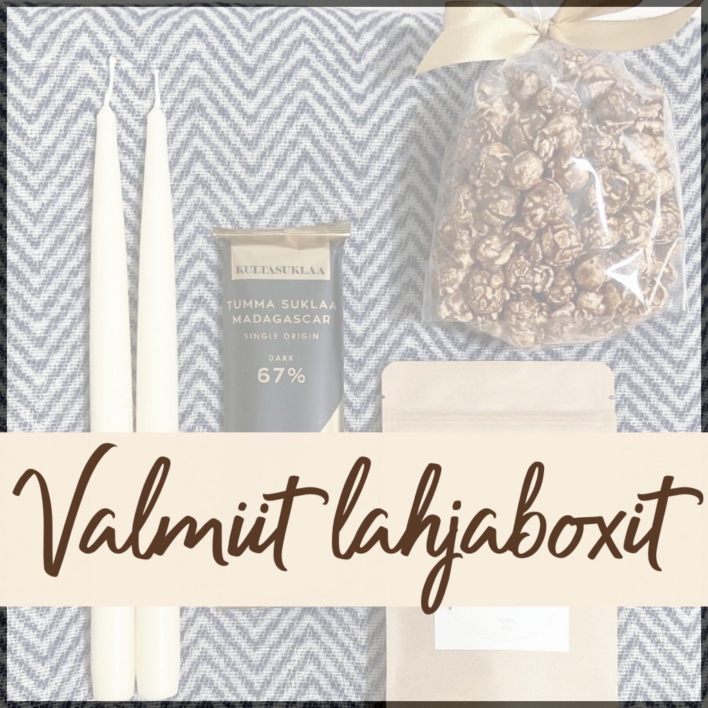 Lahjaboxi on kaunis ja persoonallinen lahjapaketti, jonka voit lähettää minne tahansa Suomessa. Voit koota itse boxeihin tuotteita mielesi mukaan laajasta valikoimastamme tai valita valmiiksi koostetun boxin tilaisuuden mukaan. Pakkaamme kaikki lahjapaketit huolellisesti ja kauniisti käsin, liitämme mukaan valitsemasi kortin sekä itse kirjoittamasi tervehdyksen lahjansaajalle ja lähetämme lahjasi suoraan vastaanottajalle